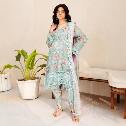 Luxury Embroidered Printed Lawn 3 Piece Suit with Digital Chiffon Dupatta